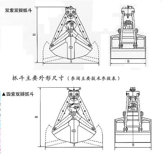 雙索雙瓣抓斗抓取比重為0.4-3.2t/m3各種粒度均勻的散貨,通常為糧食、煤炭、水泥、黃砂石子、礦粉、礦石、鹽等。抓斗容積有0.5至10立方。 電動(dòng)平口抓斗常用于多用途起重機(jī)上,自身有開(kāi)閉機(jī)構(gòu),可以在任意高處裝卸物料,但需增設(shè)輸送能量的電纜裝置。四索雙瓣抓斗適用于港口、能源流通行業(yè)中橋式卸船機(jī),抓取比重為0.6-3.2t/m3各種粒度均勻的散貨,通常為糧食、煤炭、水泥、硫磺、礦粉、礦石等。