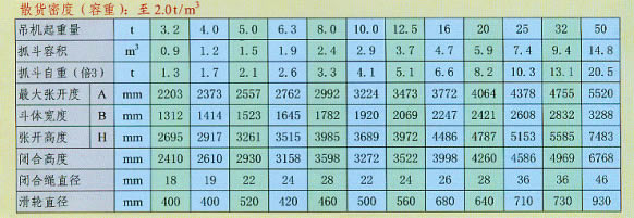雙索雙瓣抓斗抓取比重為0.4-3.2t/m3各種粒度均勻的散貨,通常為糧食、煤炭、水泥、黃砂石子、礦粉、礦石、鹽等。抓斗容積有0.5至10立方。